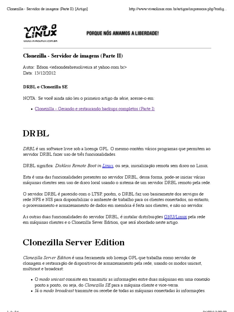 Clonezilla Servidor De Imagens Parte Ii Artigo Servidor Computacao Endereco De Ip