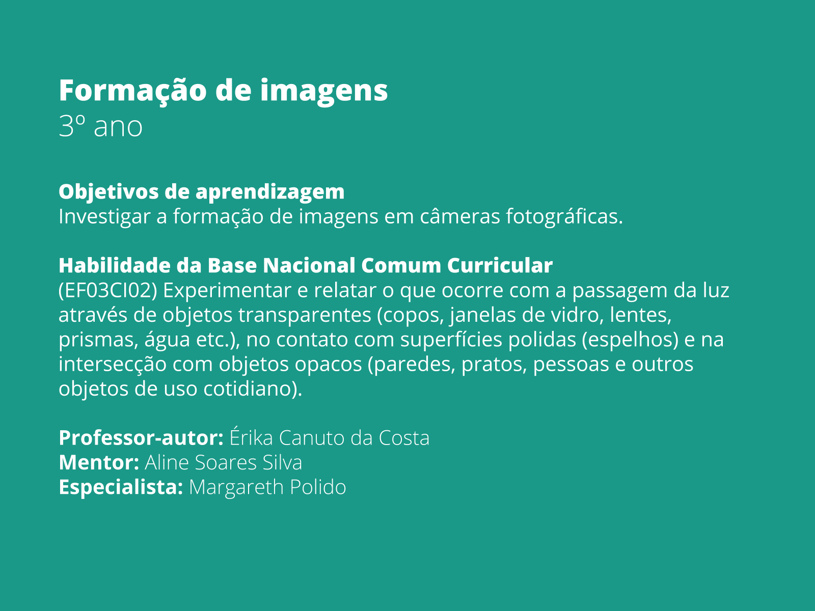 Plano De Aula 3º Ano Ciencias Formacao De Imagens