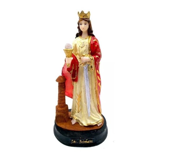 Escultura Imagem De Santa Barbara Em Resina 15 Cm Catolica Madeiramadeira