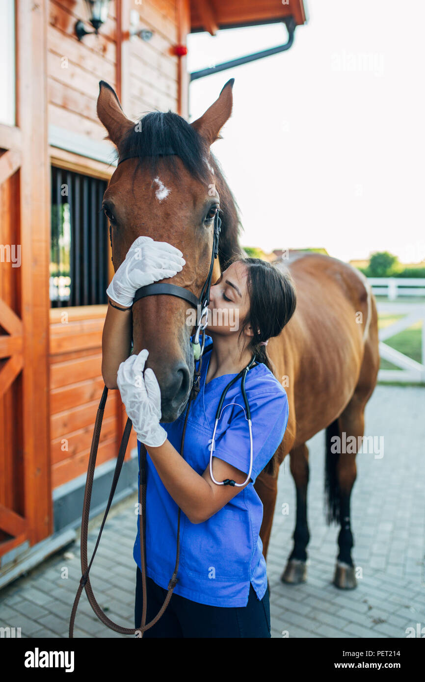 Vet Kissing A Horse Outdoors At Ranch Stock Photo Alamy